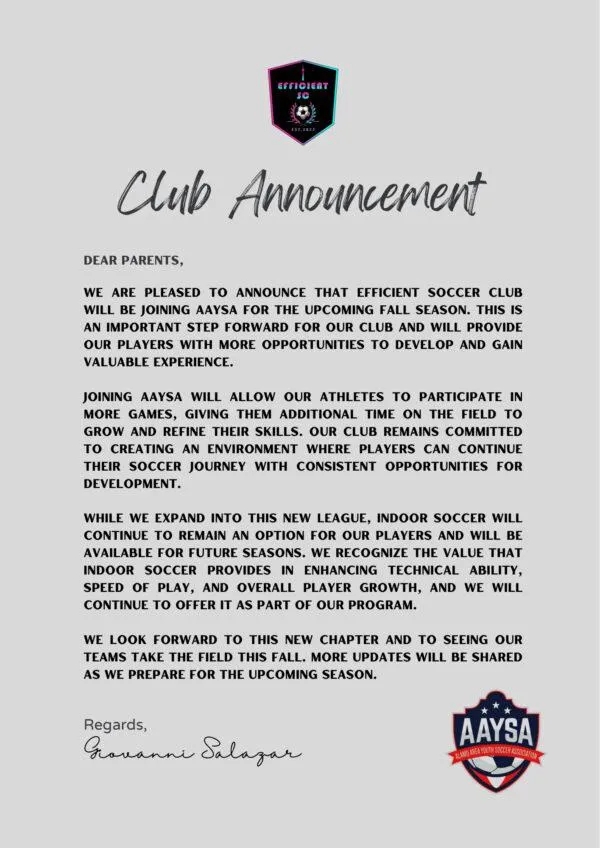 This training program is separate from AAYSA league registration. When you sign up for AAYSA, you're registering for games only, which is why the league fee is significantly lower. If you'd like to add team training, it is $130/month, which includes twice-weekly practices and access to our seasonal curriculum. This can be paid monthly or up front.